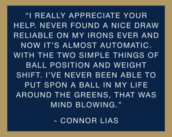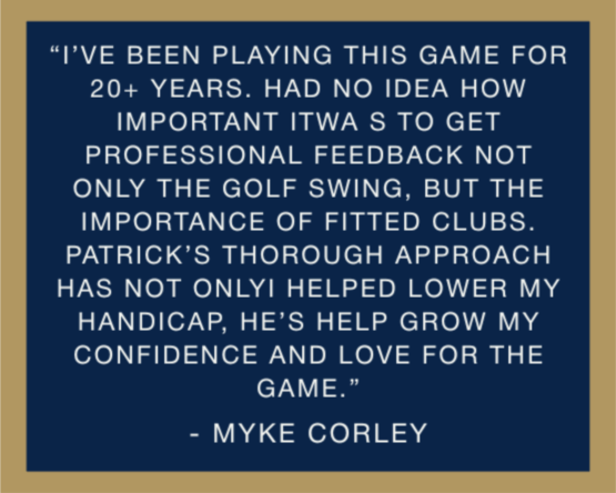 The #1 goal of any lesson, fitting, or clinic is to enjoy the game of golf. We achieve this through a relaxing and comfortable environment centered around the student's goals. Patrick helps provide confidence and guarantees you’ll see improvement.