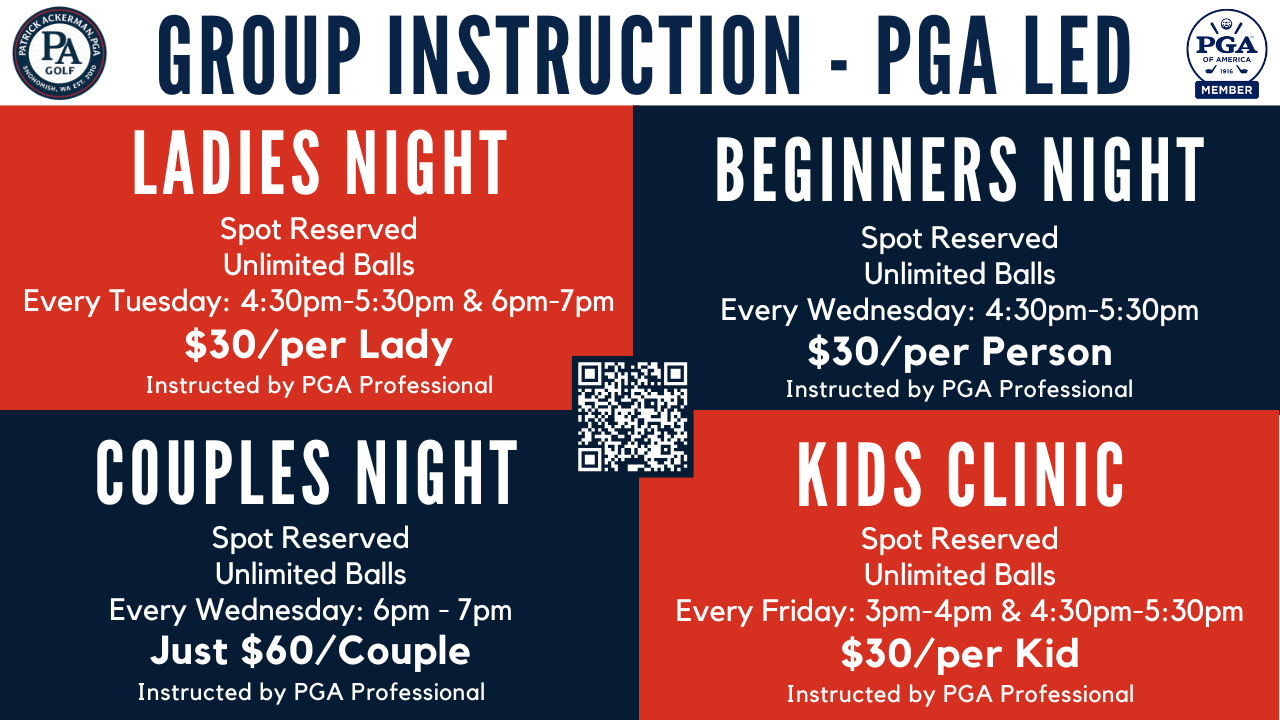 The #1 goal of any lesson, fitting, or clinic is to enjoy the game of golf. We achieve this through a relaxing and comfortable environment centered around the student's goals. Patrick helps provide confidence and guarantees you’ll see improvement. By teaching in a simple way and encouraging students to swing aggressively we will always work towards full potential and full speed.